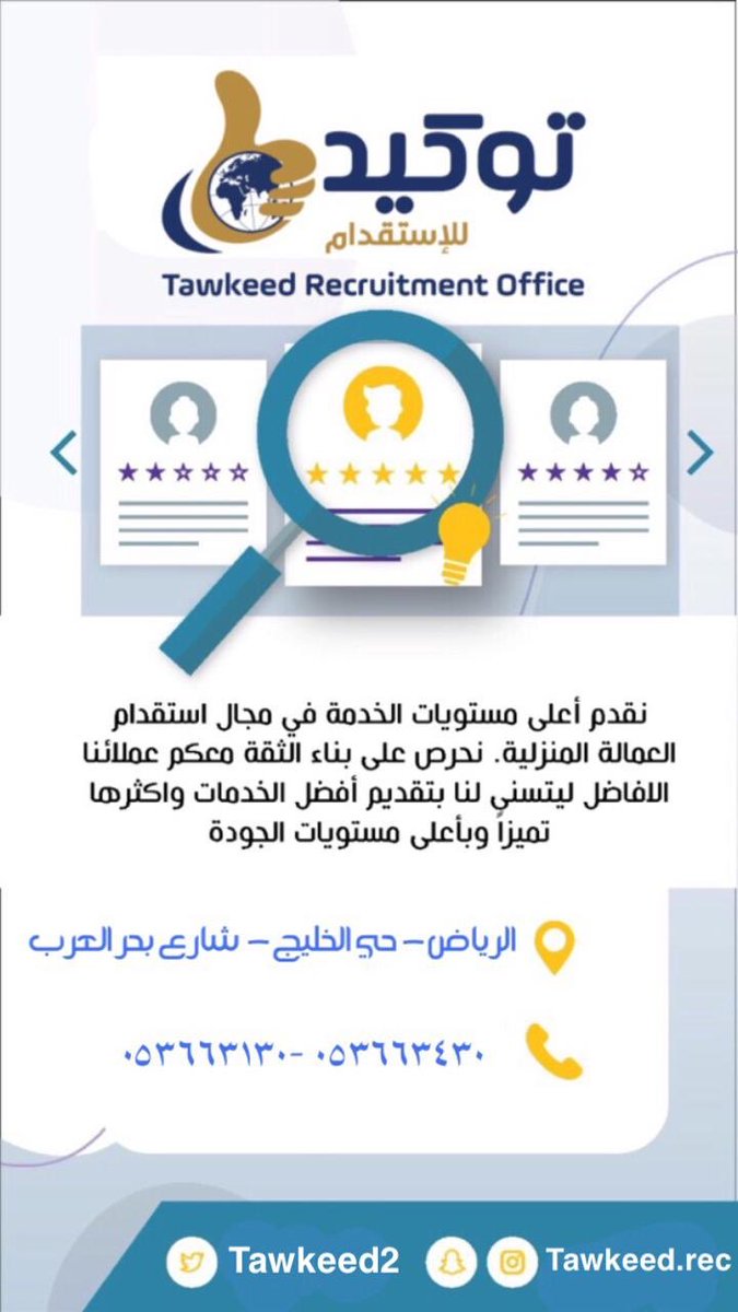 يقدم مكتب العقيل للإستقدام أفضل خدمات استقدام عمالة منزلية متميزة سرعة إنجاز الإستقدام بأسعار تنافسية ودعم متكامل في موقع مساند برنامج العمالة المنزلية. تقدم المكاتب خدمة استقدام الخادمات والعمالة المنزلية من جنسيات مختلفة والاختيار حسب رغبة العميل فيراعي المكتب تقديم كافة الحقوق والضمانات للعميل والعمالة فسوف نوضح لكم أفضل. عبدالله بن راشد 07 01 2019. بفضل من الله تم افتتاح فرعنا الجديد في القصيم 15 يناير 2019.